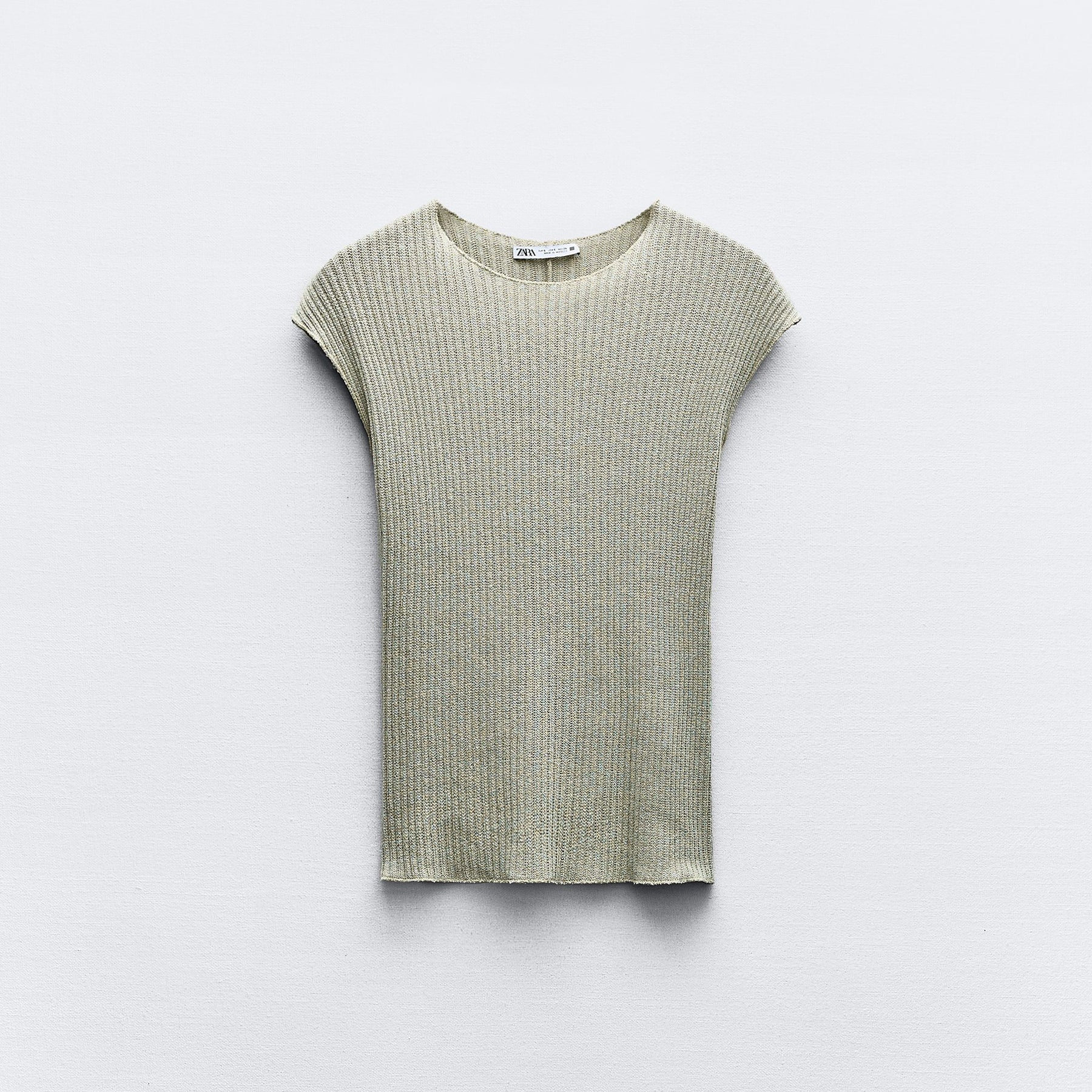 •nom produit: top maille rustique col rond •couleur: vert clair •marque: zara •composition: 62% coton | 30% polyester | 4% Élasthanne | 4% autres fibres |