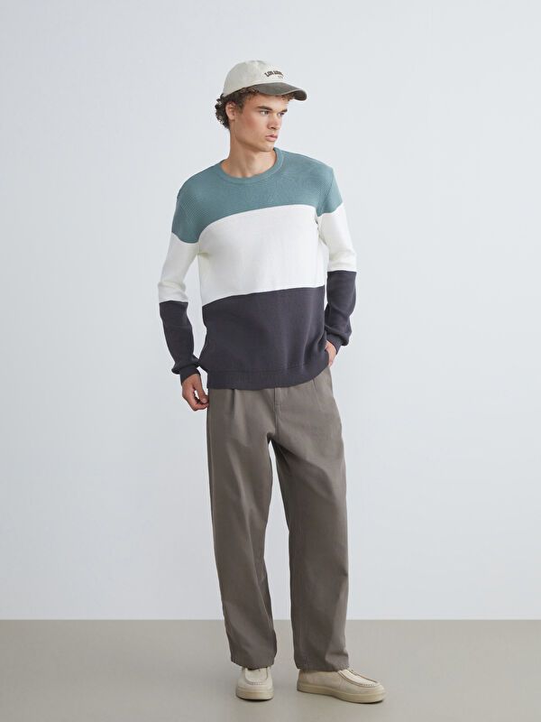 Moudda LC Waikiki - Pull rayé en tricot couleur Vert terne pour hommes - Tunisie 3