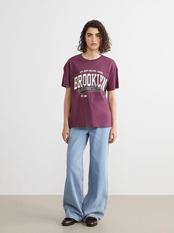 Moudda LC Waikiki - Body imprimé en jersey manches courtes Femme Prune - Tunisie 3