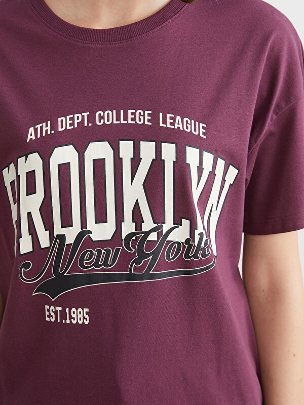 Moudda LC Waikiki - Body imprimé en jersey manches courtes Femme Prune - Tunisie 4