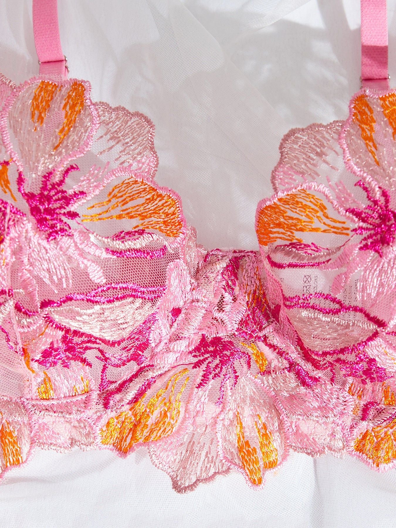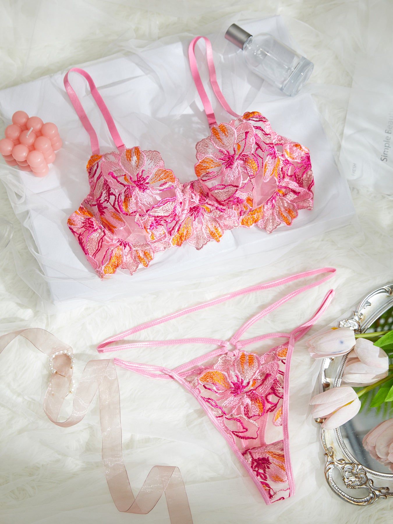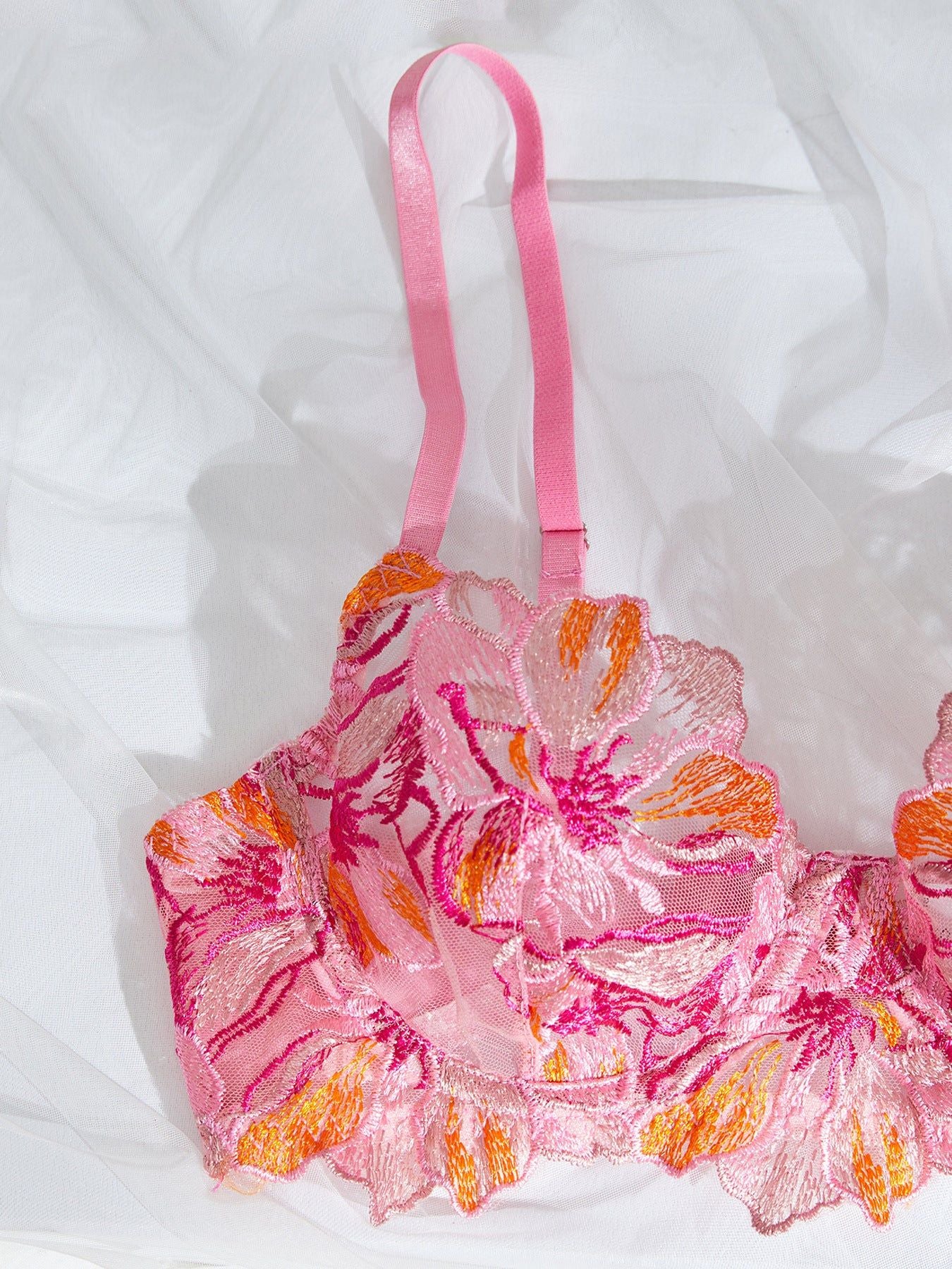 Ensemble lingerie deux pièces en tulle transparent brodé, composé d’un soutien-gorge raffiné et d’une culotte assortie