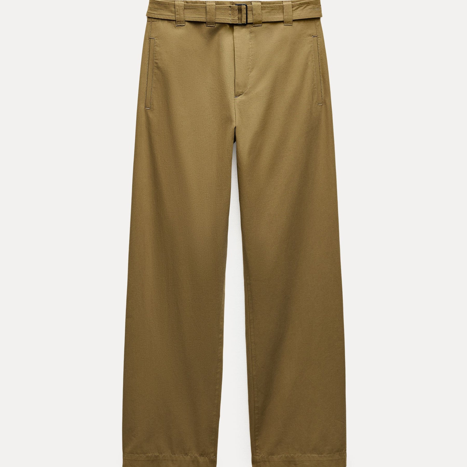 •nom produit: pantalon large à ceinture •couleur: vert huile •marque: zara •composition: 100% coton