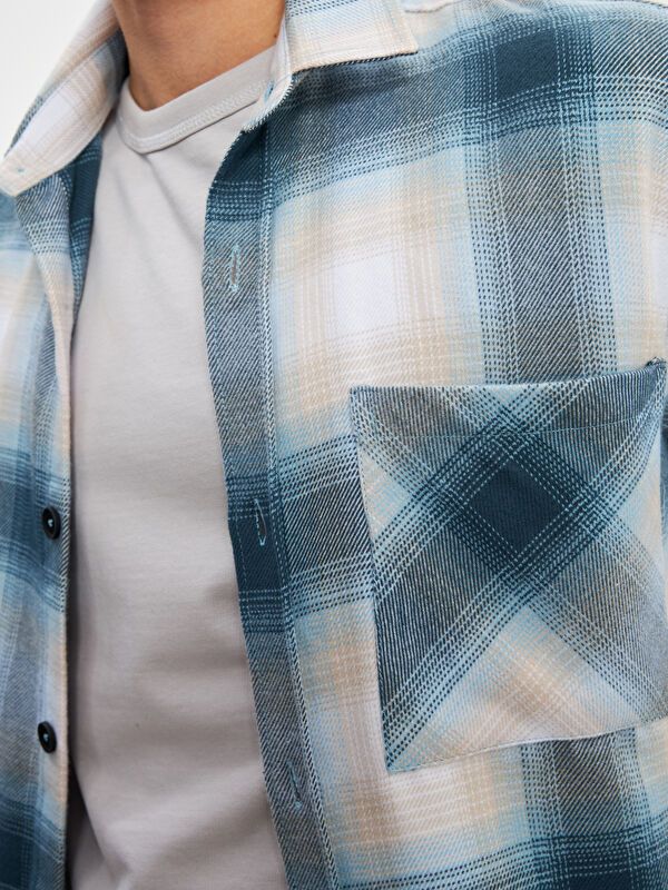 Chemise tissée manches longues Homme A carreaux noirs 1
