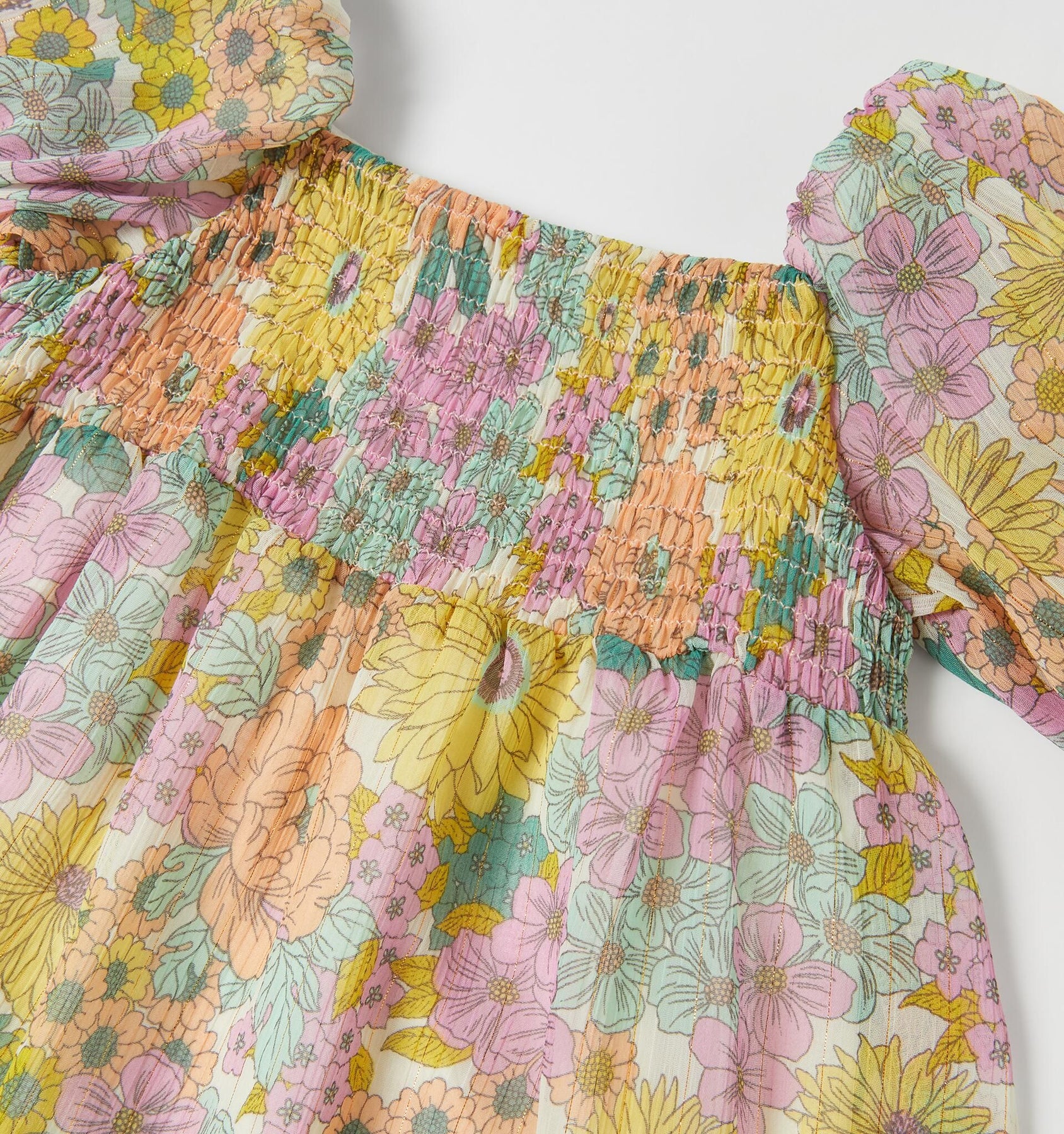 T24-36-48-60-72 Vestido Bya Print Flores Malvas (E) Ramadan, 99% Polyester, 1% Fibre Métallisée