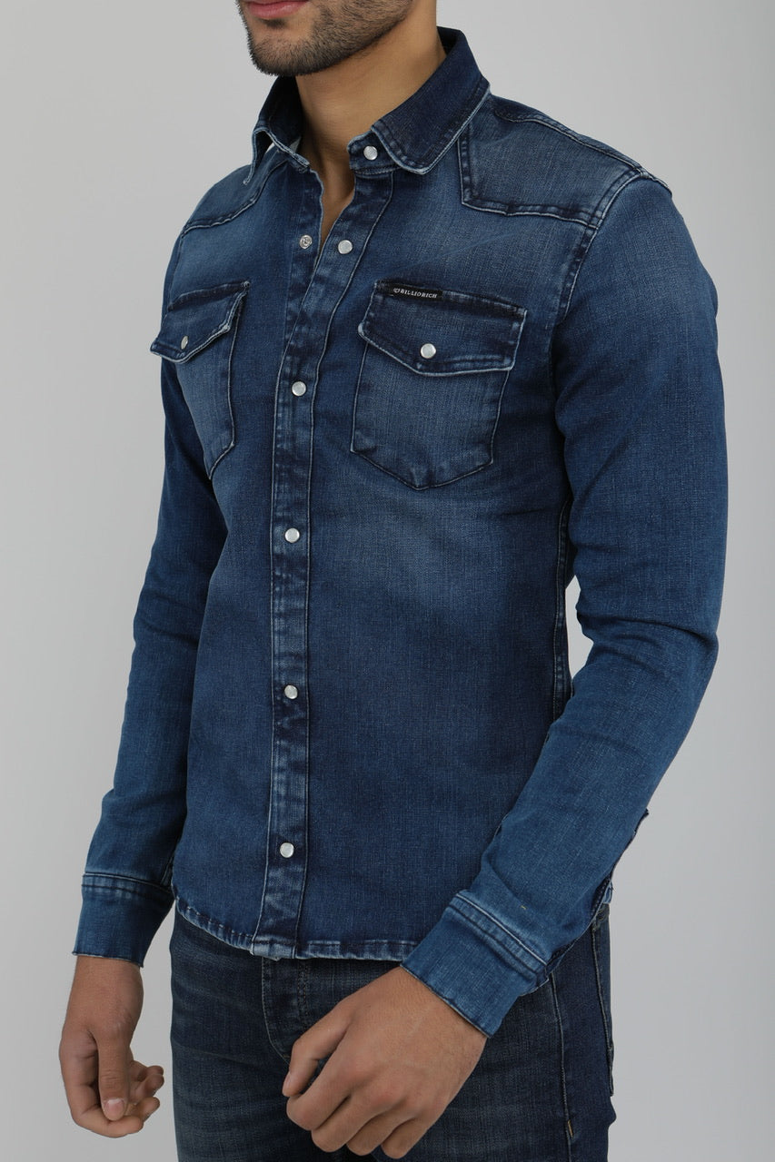 chemise en jean bleu foncé coupe slim fit