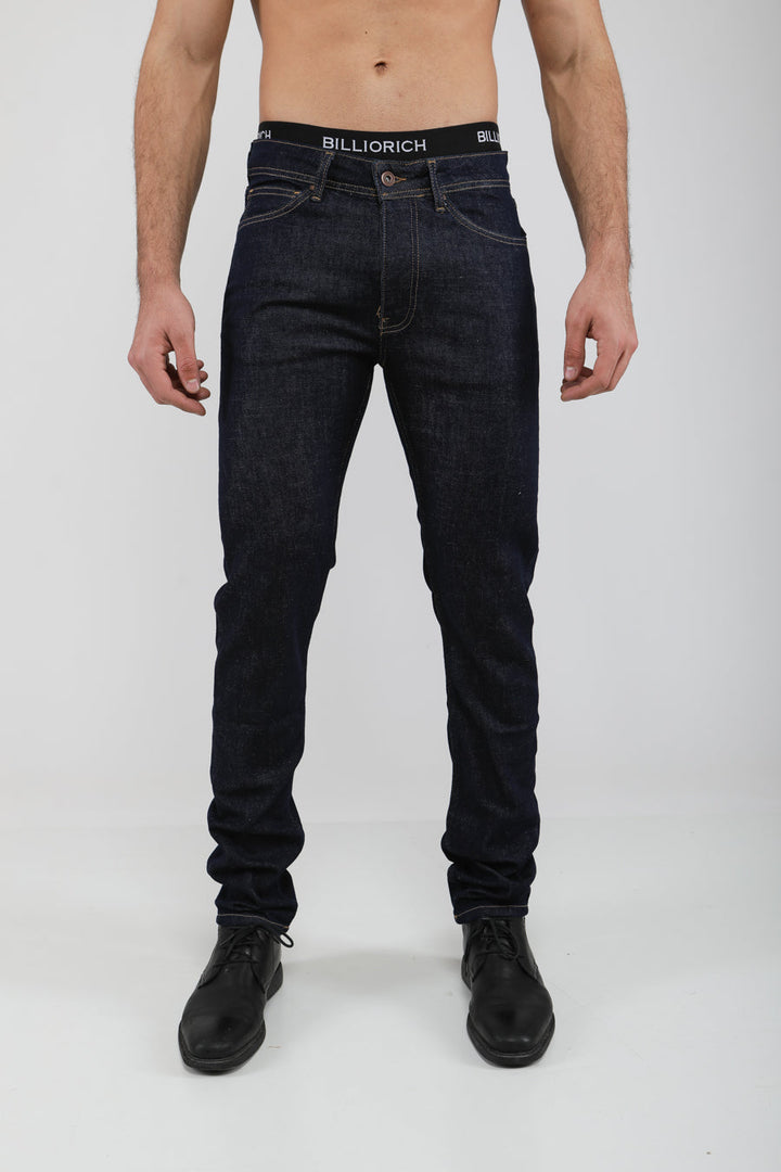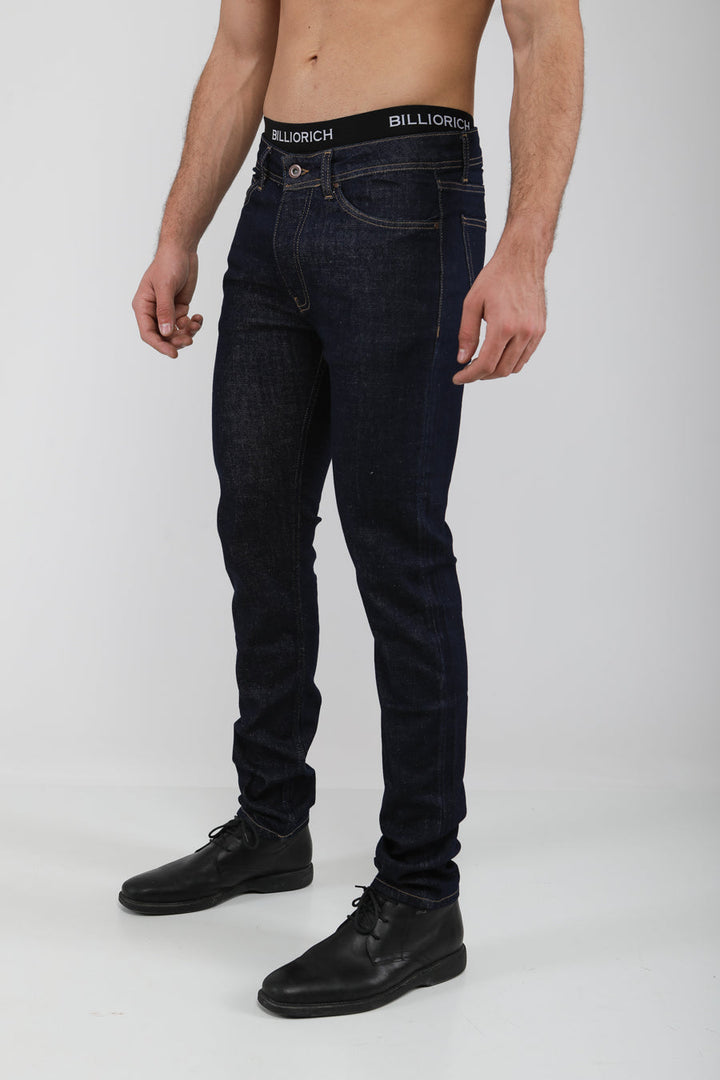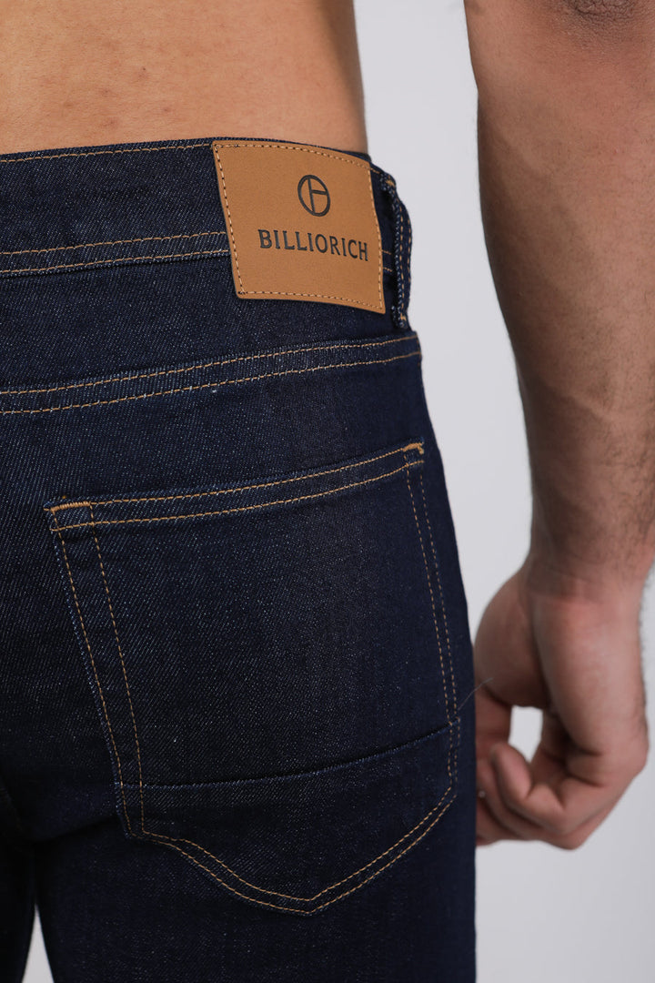 pantalon bleu foncé coupe slim fit à effet