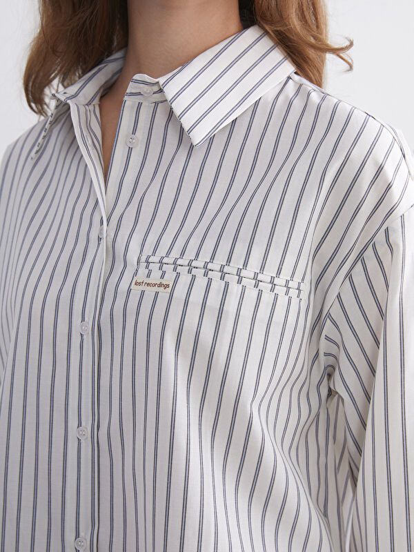 Moudda LC Waikiki - Tunique tissée manches longues Femme Rayures bleues - Tunisie 3