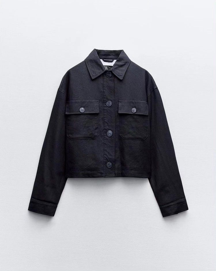 Veste courte lin boutons détail doublure
