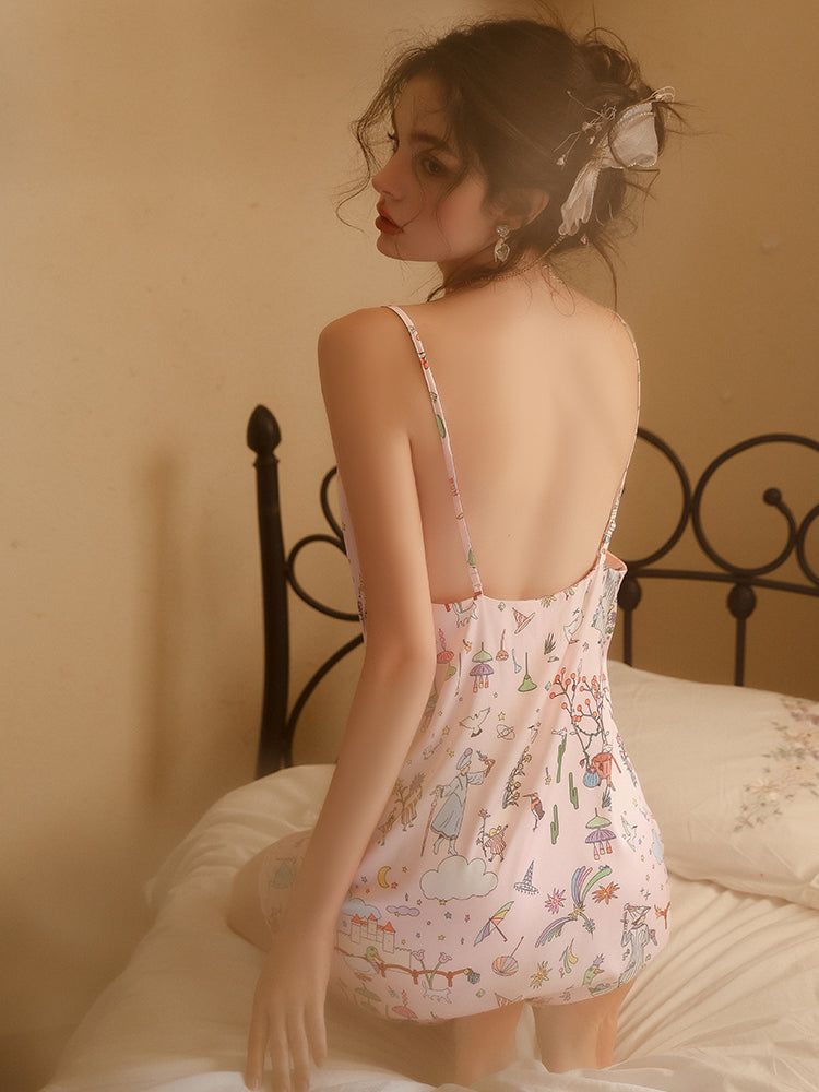 Coupe : nuisette courte et droite, décolleté en V subtil, bretelles fines ajustables.