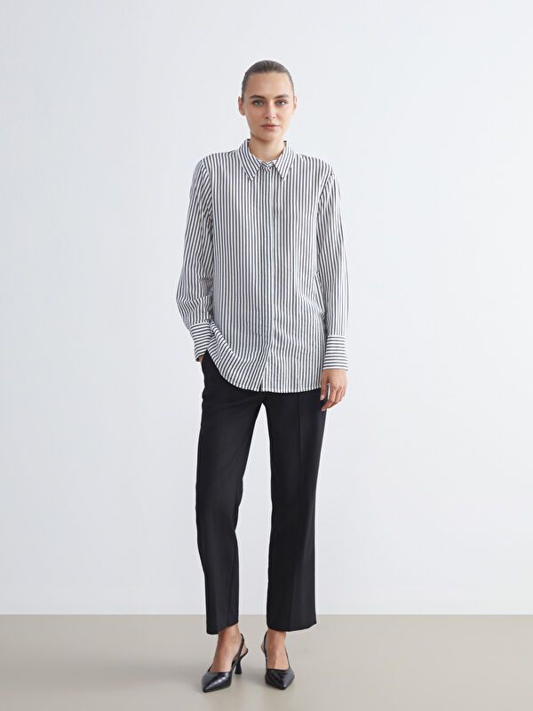 Moudda LC Waikiki - Chemise tissée manches longues Femme Rayures noires - Tunisie 3
