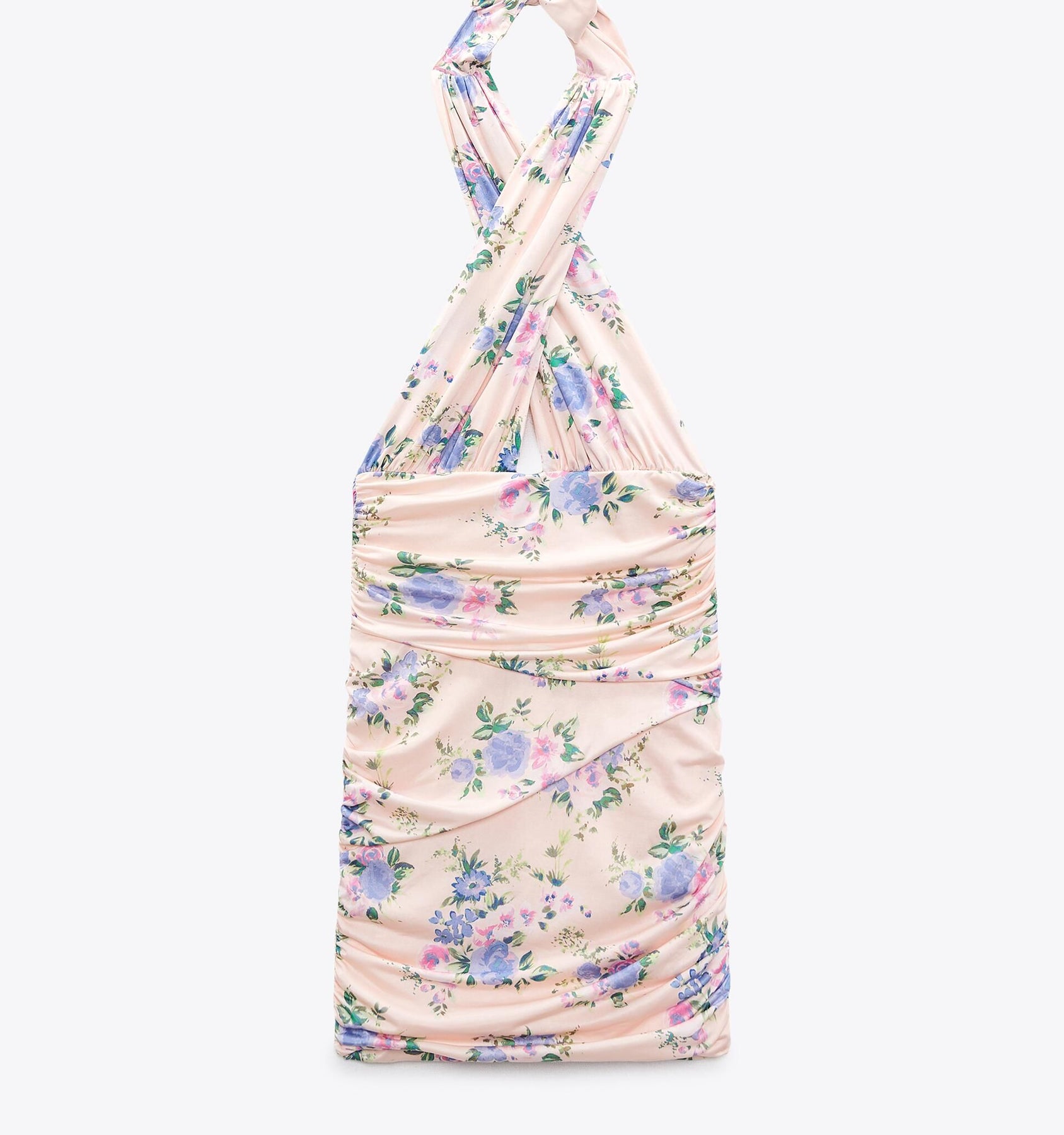 95% POLYESTER, 5% ELASTHANNE - VESTIDO CORTO PUNTO E/PICO CUELLO HALTER F/DRAPEADA ESTAMPAD