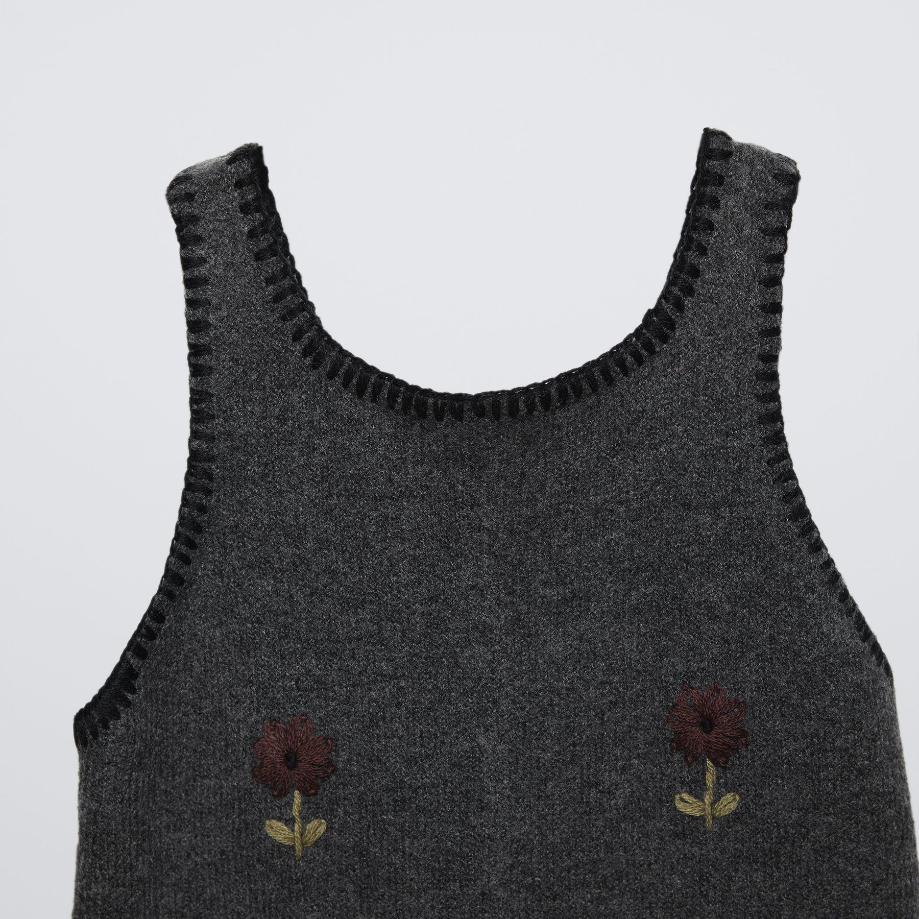 •NOM PRODUIT : Salopette maille enfant gris fleurs brodées