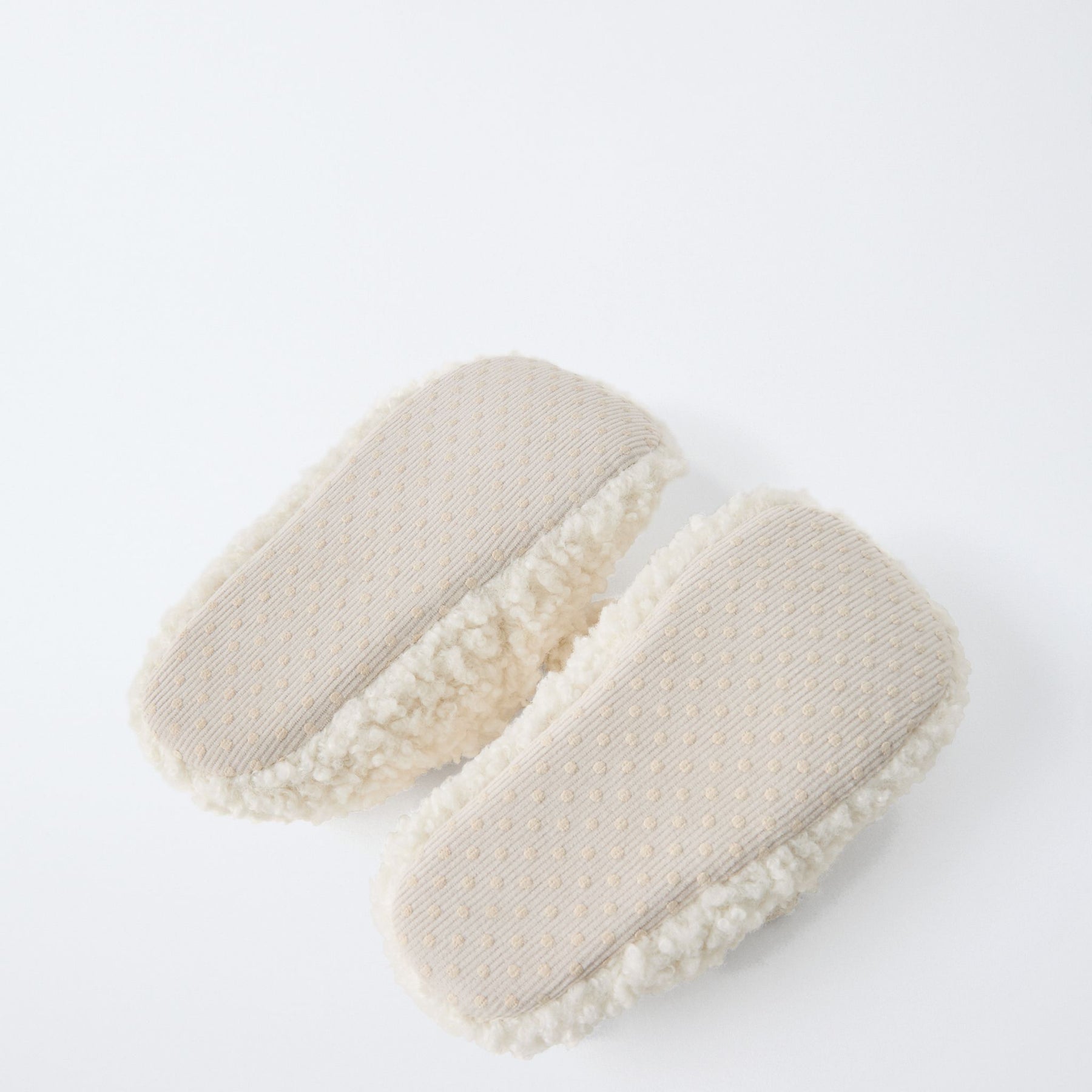 •nom produit : chaussons effet mouton •couleur :blanc cassé •marque :zara •composition :95% polyester | 5% coton