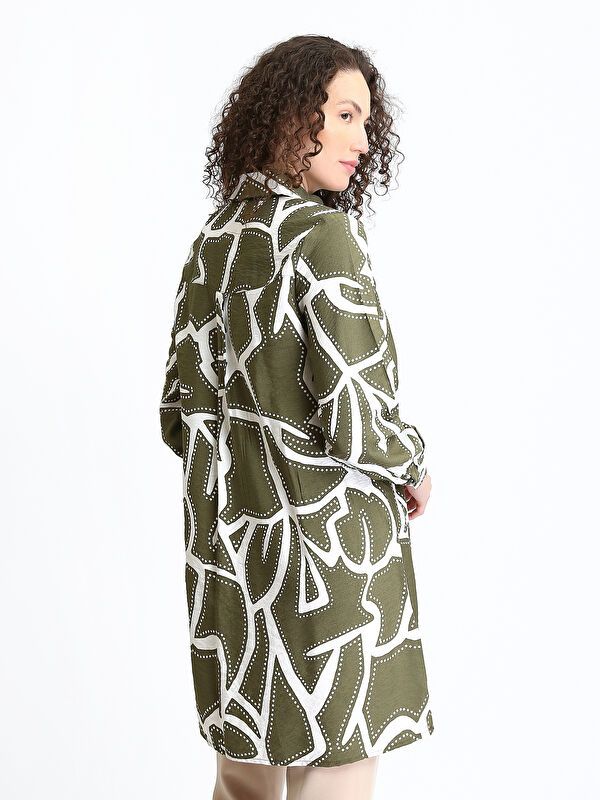 Moudda LC Waikiki - Tunique tissée imprimée manches longues Femme Kaki imprimé - Tunisie 3