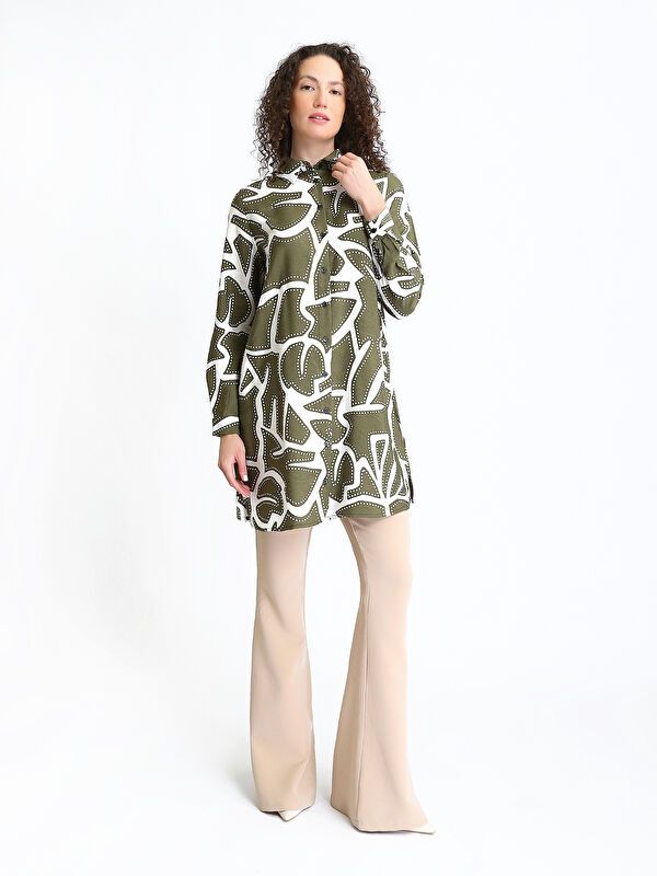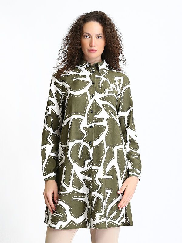 Moudda LC Waikiki - Tunique tissée imprimée manches longues Femme Kaki imprimé - Tunisie 1